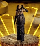 Rihanna just reminded fans, once again, that she absolutely commands the stage. The 35-year-old singer performed her Oscar-nominated single "Lift Me Up" from the "Black Panther: Wakanda Forever" soundtrack during the March 12 ceremony. Sparkling in a black and crystal top with trousers and long latex gloves, the performer slowly rose up - as the song suggests - on a platform in the center of the Dolby Theatre stage, backed by gospel singers and a live orchestra.